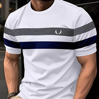 남성 크루 넥 반팔 스트라이프 패턴 티셔츠 여름 야외 활동 티셔츠
