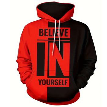 BELIEVE in YOURSELFメンズプリントカラーブロックパーカー快適ルースファッションポケット付き秋シーズン