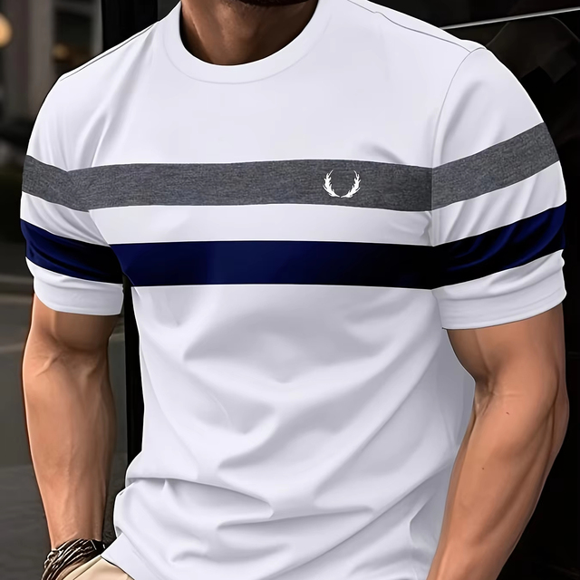 サマーメンズクルーネック半袖ストライプパターンTシャツ