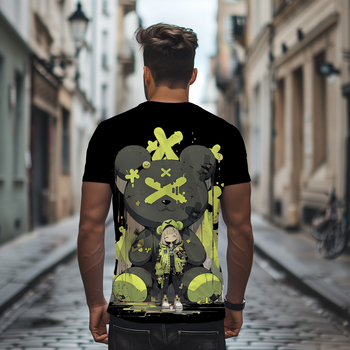 夏用メンズ3DベアグラフィックプリントTシャツ、メンズ服Tシャツ
