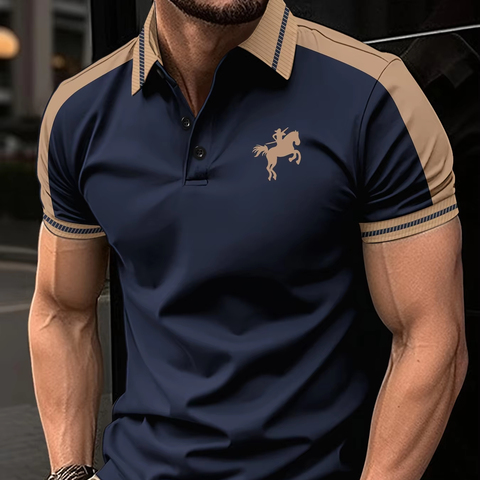 サマーレディメンズホースプリント半袖ゴルフTシャツ-アウトドアスポーツやテニス用の通気性ポリエステル